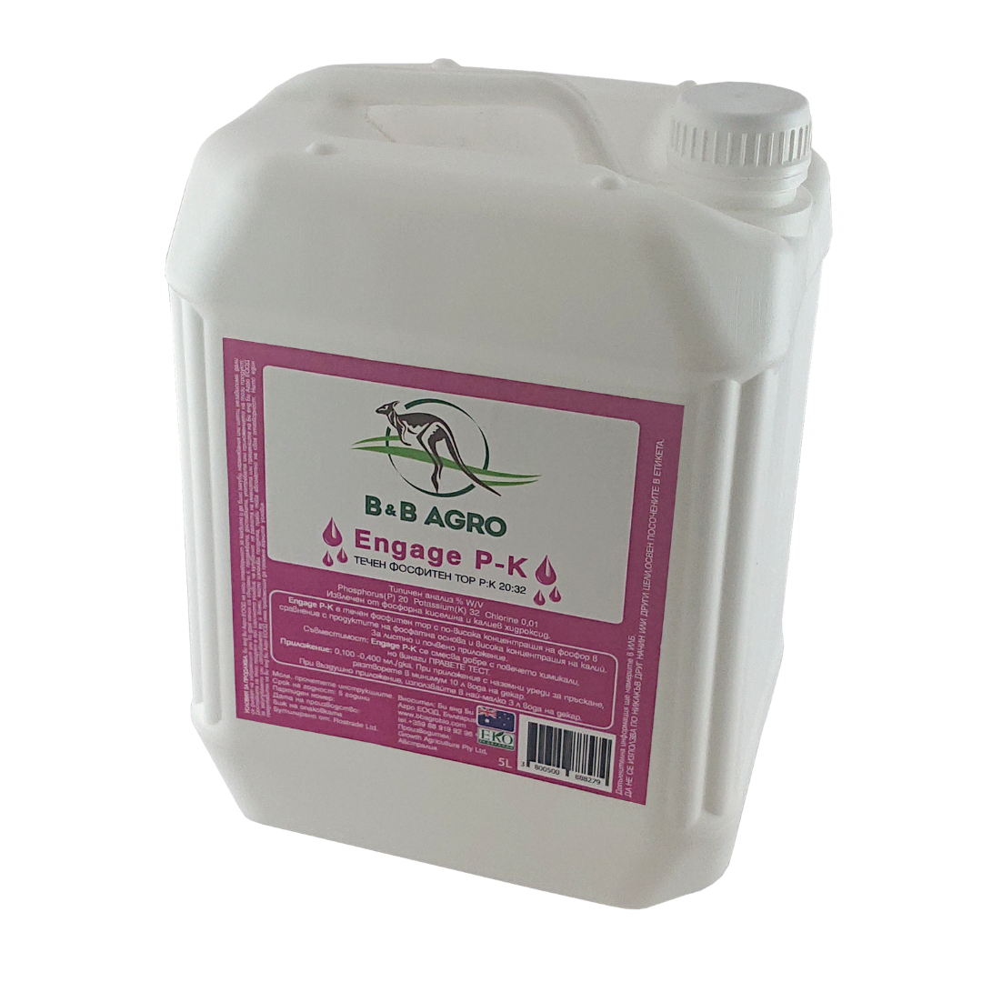 „B&B Agro” EOOD oferă pe piață îngrășământ foliar Engage P-K în tăieturi de 0,100 l; 0,200 l; 1l; 5 l; 20 l. și 200 l.
