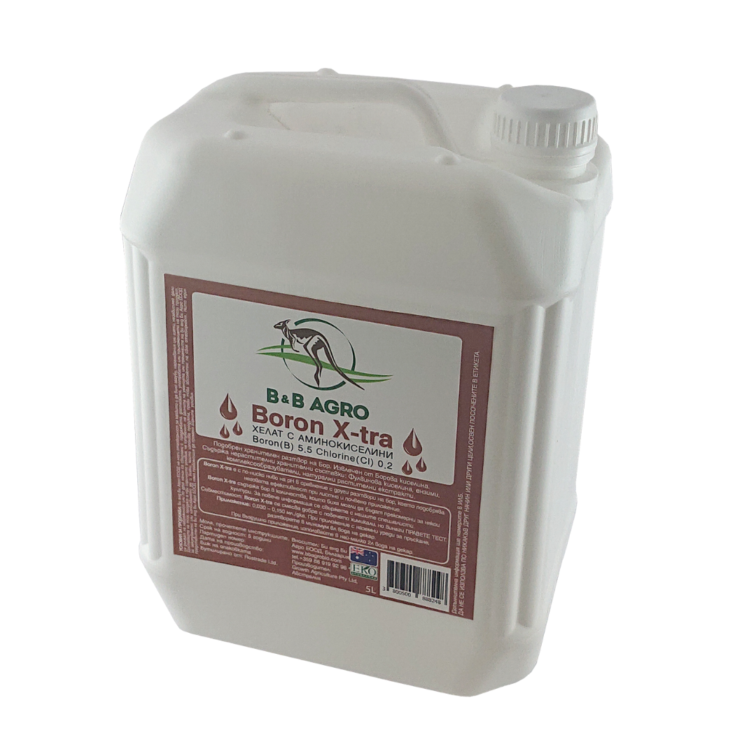 Boron X-tra este un stimulent biologic, un amestec de acid boric și agenți de complexare organici specifici. Oferă bor cu pH scăzut, care este complet digerabil și disponibil.